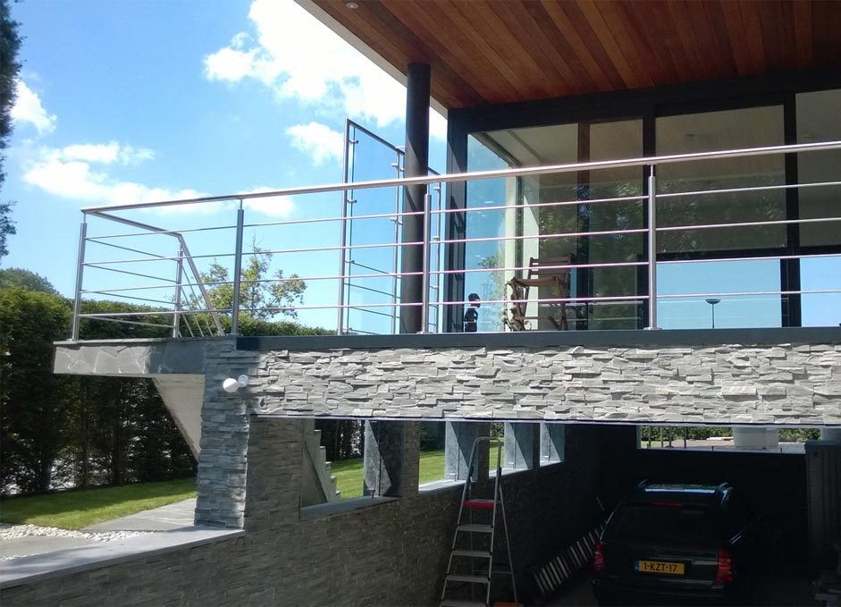Edelstahl-Geländer aus Vollglas